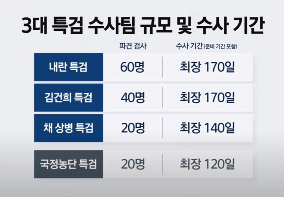 5. 3대 특검 수사팀 규모 및 수사 기간