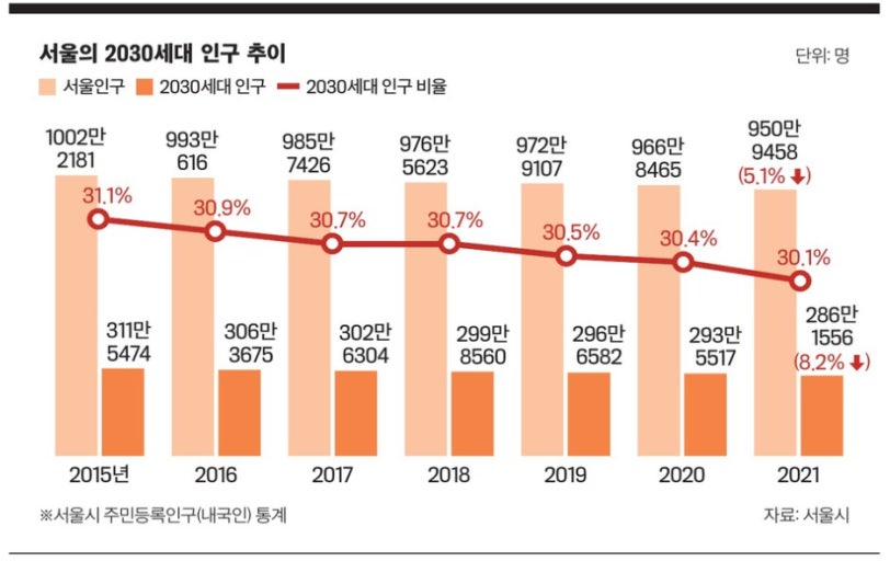 서울시의 발표를 보면, 2030 세대는 확실히 줄어들고 있다.