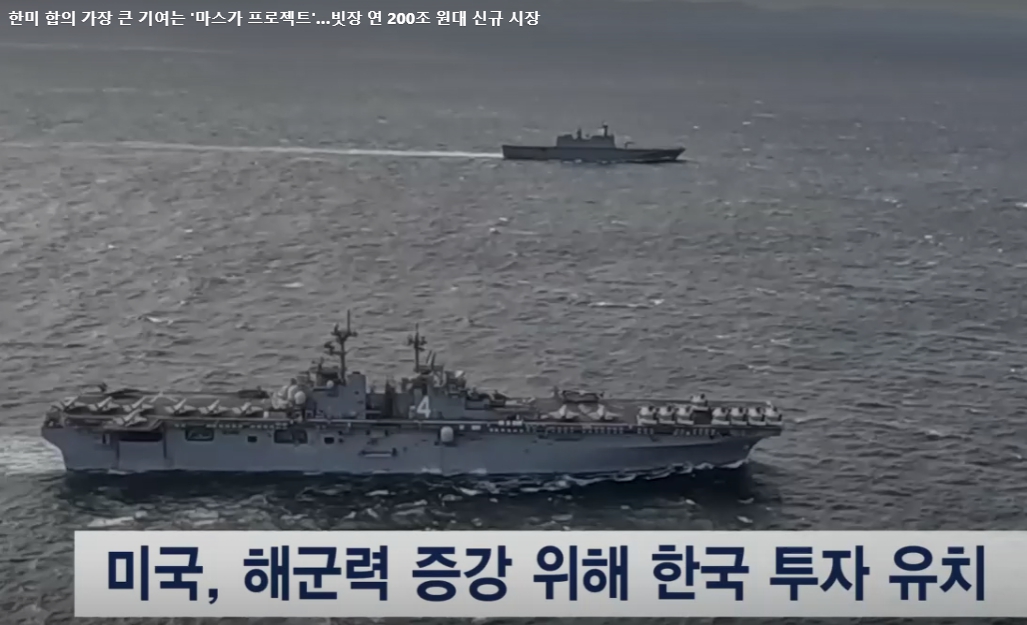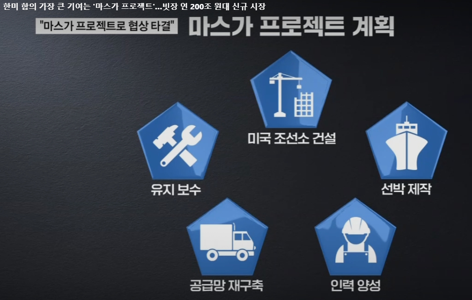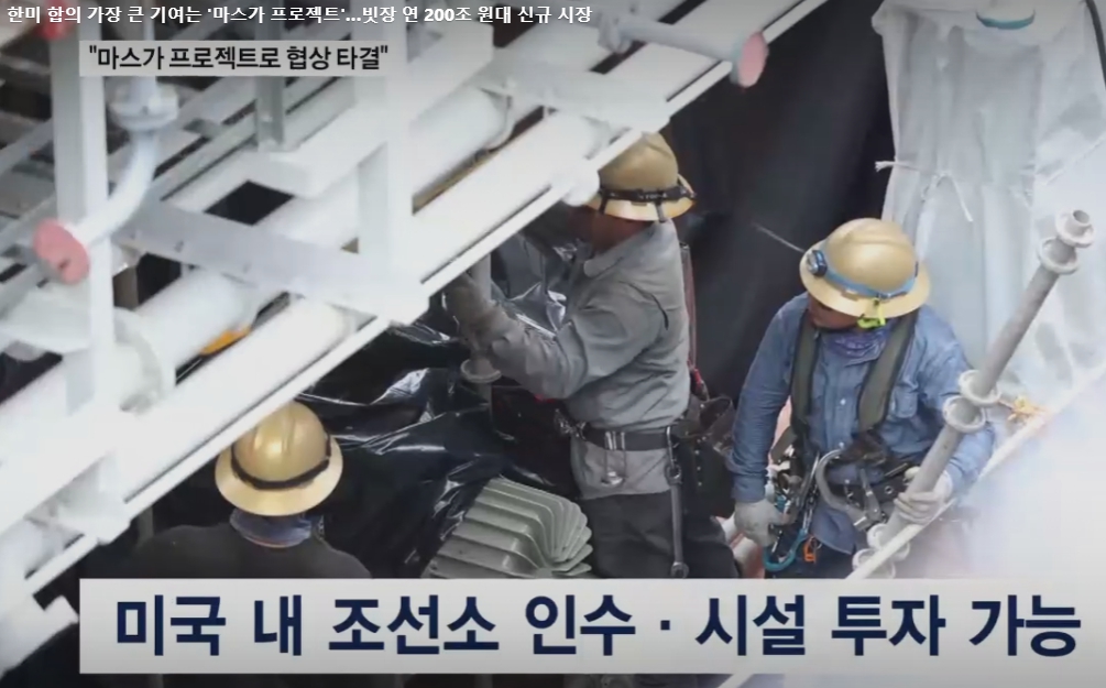 대한민국이 미국에 투자하는 3500억 달러 중 1500억 달러가 투입되는 마스가(MASGA) 프로젝트는 미국 조선업을 활성화하는 내용이 담겨 있다.