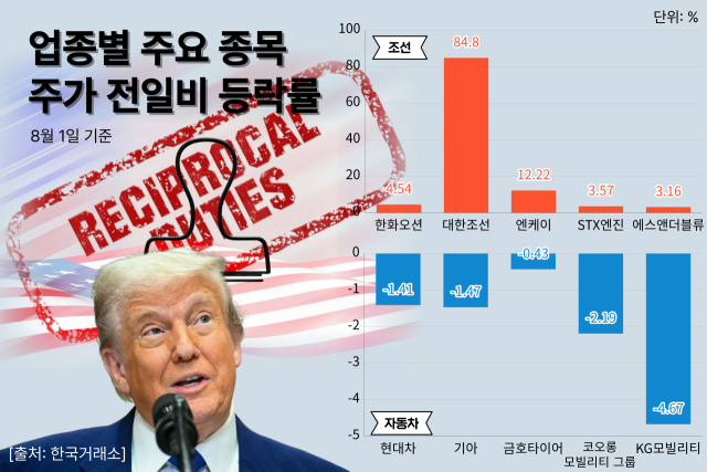 한미 관세협상 결과, 조선업은 대규모 투자와 협력펀드 조성 등으로 큰 수혜를 입으며 주가가 급등했고, 자동차 산업은 관세 인하 폭이 크지 않아 실익이 제한적이라는 평가를 받으며 주가가 하락했습니다.