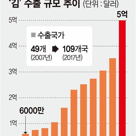 이러한 김밥의 인기는 한국 김 수출량 증가에도 긍정적인 영향을 미치고 있습니다. 2023년 10월 기준, 한국 김 수출액은 8억 5천만 달러를 기록하여 전년 대비 큰 폭의 성장을 보였습니다. 이는 김밥의 인기가 한국 김에 대한 수요 증가로 이어졌음을 보여줍니다.