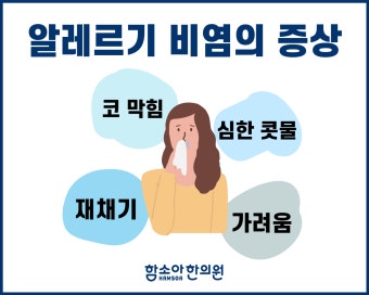 - 코막힘: 코 점막이 부어올라 코가 막히며, 특히 밤에 심해져 수면을 방해한다.